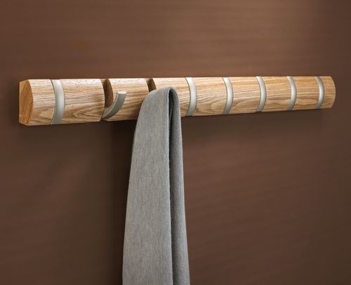 Prosty i ładny wieszak ścienny z ośmioma chowanymi haczykami. Wieszak kiedy na nim nic nie wisi przypomina różnokolorową listwę dekoracyjną. Aby go użuć trzeba odchylić do dołu metalowe elementy, które stają się haczykami. Maksymalne obciążenie każdego haczyka do 2 kg więc z pewnością udzwigną kurtkęlub płaszcz. W zestawie znajdują się elementy do mocowania wieszaka.