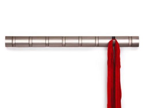 Prosty i ładny wieszak ścienny z ośmioma chowanymi haczykami. Wieszak kiedy na nim nic nie wisi przypomina różnokolorową listwę dekoracyjną. Aby go użuć trzeba odchylić do dołu metalowe elementy, które stają się haczykami. Maksymalne obciążenie każdego haczyka do 2 kg więc z pewnością udzwigną kurtkęlub płaszcz. W zestawie znajdują się elementy do mocowania wieszaka.