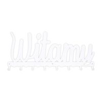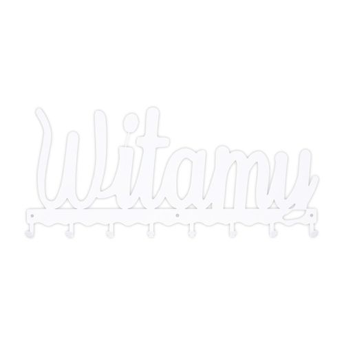 Wieszak ścienny Witamy to nowoczesne rozwiązanie do przedpokoju, holu lub poczekalni. Jego precyzyjnie wycięty laserowo wzór, z napisem witającym gości, nada uroku każdemu wnętrzu. Stalowy malowany proszkowo wieszak jest uniwersalny oraz odporny na uszkodzenia. Matowe wykończenie dodaje listwie stylu. Dzięki aż 8 haczykom o udźwigu do 3kg każdy, możemy powiesić na wieszaku klucze, kurtki lub nawet torby. Produkt dostępny jest w dwóch kolorach co zwiększa jego możliwości aranżacyjne. Maksymalne obciążenie to 24kg. Do wieszaka załączany jest zestaw montażowy, który składa się z kołków, zaślepek i śrubek. Wysokość: 23