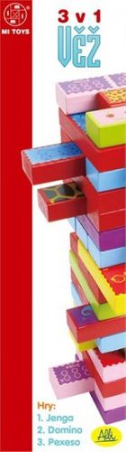 Wieża - 3w1 to zestaw kolorowych drewnianych klocków, przy których zabawa nie ma końca! Zawartość pudełka możemy użyć przynajmniej na trzy sposoby: jako domino, memory lub Jengę.