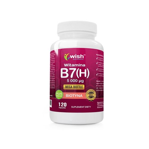 Suplement diety Wish Witamina B7 Biotyna (H) to wysokiej jakości preparat, którego skład bazuje na wysokiej zawartości witaminy B7, zwanej także biotyną, z dodatkiem inuliny dla jeszcze lepszego działania! Już jedna porcja produktu to bogactwo składników aktywnych, których działanie wpływa korzystnie na poprawę zdrowia. Suplementacja preparatem Wish Witamina B7 Biotyna (H) oddziałuje pozytywnie na utrzymanie prawidłowych funkcji psychologicznych, jak również na przebieg procesów metabolizmu energetycznego, a także zapewnia właściwe funkcjonowanie układu nerwowego i poprawia stan skóry, włosów i paznokci, wpływają tym samym korzystnie także na nasz wygląd! Preparat Wish Witamina B7 Biotyna (H) jest dedykowany osobom ze słabymi, wypadającymi włosami i łamliwymi paznokciami, oraz wszystkim, którzy pragną przyspieszyć swój metabolizm energetycznych i zwiększyć nastrój! Produkt dostępny w formie łatwych do połknięcia kapsułek ułatwiających codzienne dawkowanie.