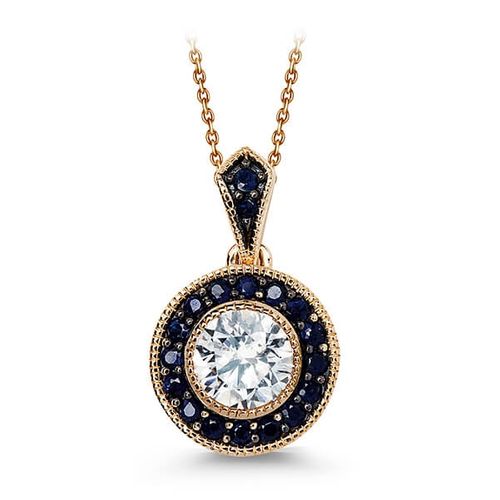 Staviori Wisiorek. 1 Topaz biały, masa 0,70 ct.. 18 Szafirów, masa 0,35 ct.. Żółte Złoto 0,585. Wysokość 20 mm.
