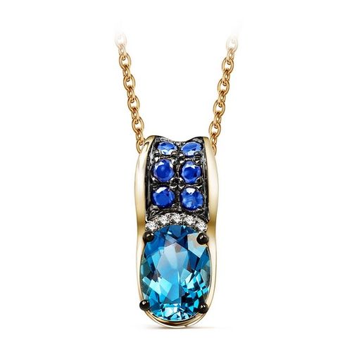 Staviori Wisiorek. 1 Topaz bĆÄkitny, masa 0,85 ct.. 6 SzafirĂłw, masa 0,20 ct.. 5 DiamentĂłw, szlif brylantowy, masa 0,013 ct., barwa H-I, czystoĆÄ I1-I2. ƻóĆte ZĆoto 0,585.