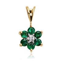 Staviori Wisiorek. 1 Diament, szlif brylantowy, masa 0,005 ct., barwa H, czystość I1. 6 Szmaragdów, masa 0,30 ct.. Żółte Złoto 0,585. Średnica 8 mm. Długość 14 mm.