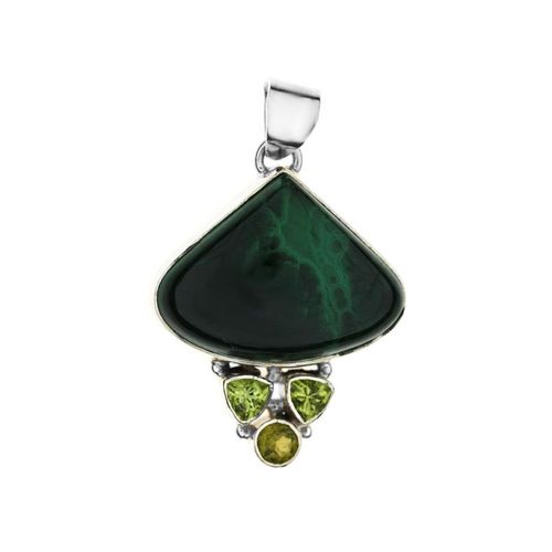 Fantastyczny wisiorek wykonany w całości z gładkiego srebra najwyższej próby 0,925 z naturalnym malachitem w połączeniu z kryształkami. Wymiary: Grubość wyrobu: 0.9 cmDługość wyrobu z zawieszką: 4.4 cmSzerokość wyrobu: 3 cmPrzybliżona waga: 15 gramDługość kamienia: 2.1 cmSzerokość kamienia: 2.8 cm Doskonała jakość wykonania gwarantowana. Do każdego produktu dodajemy eleganckie pudełko i metkę jubilerską z pustym miejscem na cenę - tak przygotowana biżuteria staje się idealnym prezentem. Malachit - dekoracyjny minerał z gromady węglanów, mający szerokie zastosowanie w sztuce. W starożytnym Rzymie pito wodę z malachitowych pucharów dla wzmocnienia siły i poprawy trawienia. Na przestrzeni dziejów często wykorzystywany w inkrustacji drogocennych przedmiotów oraz zdobieniach elementów architektury wnętrz. Oczyszcza i otwiera wszystkie czakry, przynosząc równowagę i harmonię. Daje odwagę do podejmowania zmian, stymuluje rozwój duchowy.