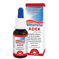 Krople Witamina ADEK Dr. Jacob’s to pierwszy taki produkt na rynku. Dzięki temu, że witaminy są rozpuszczone w oleju, już w ustach wchłaniają się bezpośrednio do krwiobiegu (z pominięciem układu pokarmowego).