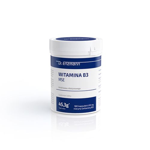 Witamina B3 MSE zawiera niacynamid (witaminę B3), która jako cegiełka koenzymu Q10 uczestniczy w licznych reakcjach enzymatycznych naszej przemiany materii, przede wszystkim w produkcji energii w elektrowniach naszych komórek – mitochondriach. Niacynamid przyczynia się do utrzymania prawidłowego metabolizmu energetycznego, oraz zmniejszenia uczucia zmęczenia i znużenia. Ponadto pomaga w prawidłowym funkcjonowaniu układu nerwowego, jak również w utrzymaniu prawidłowych funkcji psychologicznych. Ma dobroczynny wpływ na skórę oraz kondycję błon śluzowych.