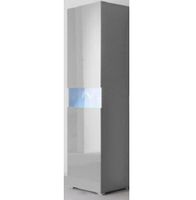 W całości wykonana z płyty wiórowej laminowanej grubości 16 mm. Krawędzie oklejone obrzeżem ABS w odpowiednim dla elementu kolorze. Półki wewnętrzne również są wykonane z płyty wiórowej grubości 16 mm. Wstawki wykonane ze szkła hartowanego grubości 4 mm. W modelu tym nie zastosowano uchwytów. Fronty przestają po za korpus co ułatwia ich otwieranie. W kolekcji zastosowano plastikowe nóżki w kolorze aluminium.