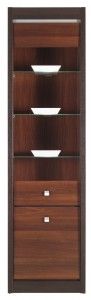 Witryna FR 8 L/P, składa się z części jedno drzwiowej dolnej oraz górnej przeszklonej. System mebli Forrest charakteryzuje się niezwykle nowoczesną i oryginalną bryłą oraz elegancją. W opcji podświetlenie led. WYMIARY:szerokośc: 55 cmgłębokośc: 41,5 cmwysokość: 200,4 cm KOLOR: korpus:orzech ciemny/ dąb mialno front: orzech ciemny PRODUKT DO SAMODZIELNEGO MONTAŻU.