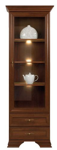 Rozwiązanie dla wielbicieli szlacheckiej stylistyki dworkowej i pałacowej. Mebel wykonany w całości w ciepłym, orzechowym odcieniu drewna. Składa się z przeszklonej części jednodrzwiowej oraz dwóch szuflad, które można wyposażyć w system cichego domyku. Ponadczasowa, klasyczna kolekcja mebli przeznaczona do pokoju dziennego i jadalni. W opcji podświetlenie led. Wymiary:szerokość: 67,5 cmgłębokość: 41,3 cmwysokość:197,5 cm PRODUKT DO SAMODZIELNEGO MONTAŻU.