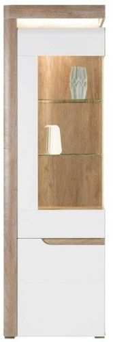 Witryna lewa składa się z otwieranego, częściowo przeszklonego frontu.Dwie, szklane półki dostępne w zestawie podświetleniem LED nadają konstrukcji walorów estetycznych. Witryna dostępna jest w dwóch wariantach kolorystycznych, z czego w wariancie białym mamy możliwość wyboru z pośród dwóch kolorów wstawek - biały połysk i dąb maggia.KOLOR:1 korpus: dąb front: biały połysk 2 korpus: biały/dąb magia front: biały połysk Wymiary:szerokość:60 cmgłębokość: 39 cmwysokość: 195,5 cm PRODUKT DO SAMODZIELNEGO MONTAŻU.