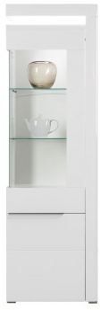 Witryna prawa składa się z otwieranego, częściowo przeszklonego frontu.Dwie, szklane półki dostępne w zestawie podświetleniem LED nadają konstrukcji walorów estetycznych. Witryna dostępna jest w dwóch wariantach kolorystycznych, z czego w wariancie białym mamy możliwość wyboru z pośród dwóch kolorów wstawek - biały połysk i dąb maggia.KOLOR:1 korpus: dąb front: biały połysk 2 korpus: biały/dąb magia front: biały połysk Wymiary:szerokość:60 cmgłębokość: 39 cmwysokość: 195,5 cm PRODUKT DO SAMODZIELNEGO MONTAŻU.