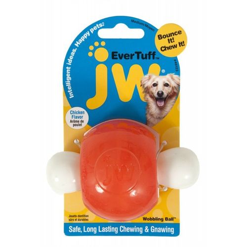EverTuff Wobbling Ball to wyjątkowy gryzak zaprojektowany, by zapewnić godziny zabawy w aportowanie jednocześnie zaspokajając naturalną potrzebę gryzienia i żucia każdego psa. Zabawka jest wykonana z trwałego nylonu nasączonego aromatem kurczaka. Gumowa piłka na nylonowej kostce pozwala zabawce odbijać się od podłoża przy zabawie w aportowanie.