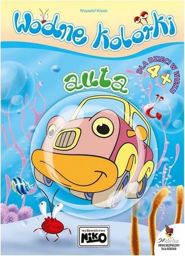 Seria Wodne kolorki to wspaniała zabawa, w której dzieci odkrywają świat kolorów. Wystarczy, że zwilżysz pędzelek wodą i możesz zacząć malować, a twój rysunek zmieni się w piękny barwny obrazek. Wodne kolorki to doskonała propozycja dla wszystkich dzieci., które chcą zacząć przygodę z farbami. To również edukacja, w której dzieci uczą się liczyć i pisać.Cała seria składa się z 5 książeczek: auta, misie, księżniczki, dinozaury, morskie zwierzęta.