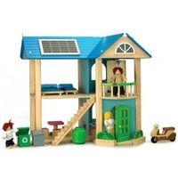 Łatwo dostępny z każdej strony przytulny eco domek ma dwie kondygnacje. Na parterze znajduje się salon z jadalnią i kuchnią oraz ogródek. Schody prowadzą na piętro gdzie znajduje się sypialnia, łazienka i balkon. Wszystkie pomieszczenia są kompletnie umeblowane,a mieszkańcy zachęca do rozpoczęcia zabawy.