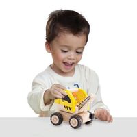 Autko posiada skrętną oś oraz żuraw, który spodoba się każdemu małemu budowniczemu.