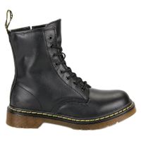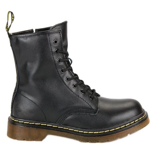 Czarne workery są idealne na jesienno-zimową zawieruchę i chłodniejsze dni. Ta para prezentuje się niemal identycznie jak klasyczne czarne glany, jedynym elementem różnicującym jest rzucająca się w oczy brązowa podeszwa. Buty wykonano ze skóry ekologicznej. Posiadają, zarówno suwak, jak i tradycyjny typ wiązania.