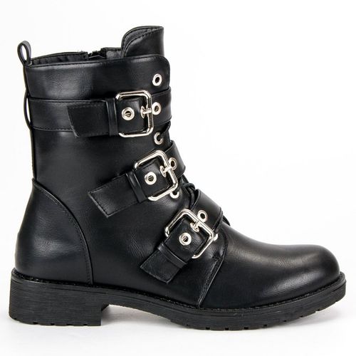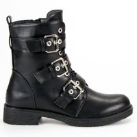 Wykonane z ekologicznej skóry, czarne workery firmy Groto Gogo to buty, które wprawdzie utrzymane są w casualowym stylu, ale przypadną do gustu również wielbicielkom rocka i gotyku. Wysokie za kostkę (16-17 cm), z niewysokim obcasem (3,5 cm), ozdobione są srebrnymi sprzączkami. Dzięki suwakowi są wyjątkowo łatwe do zakładania.