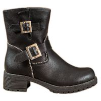 Modne i bardzo wygodne Workery damskie w kolorze czarnym. Buty wyprodukowano przy użyciu skóry ekologicznej najwyższej jakości. Wysoka cholewka chroni przed chłodem oraz wilgocią. Ozdobne klamry sprawiają, że ten model obuwia wyróżnia się na tle konkurencji. Buty będą pasować do wielu różnych stylizacji.