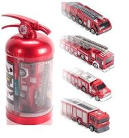 wozu strażackiego w skali 1:58. Autko zapakowane w solidną i estetyczną puszkę w kształcie gaśnicy: