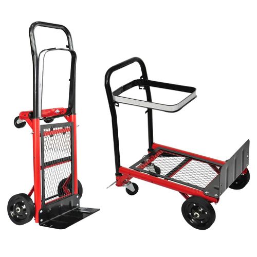 Wózek platformowy o maksymalnym obciążeniu 70 kg może również służyć po złożeniu jako wózek standardowy. Wózek ma stabilną konstrukcję i wyposażony jest w 4 kółka.