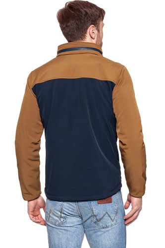 Jesienno/wiosenna kurtka marki Wrangler. Pikowany przód oraz połączenie odcieni granatu i brązu tworzy wyjątkową kompozycję. Na lewej piersi logo producenta. Model został wyposażony w dwie zewnętrzne kieszenie oraz kaptur chowany w kołnierzu. Kurtka łączy