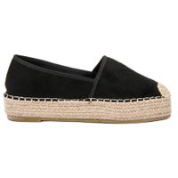 Bardzo wygodne buty - wykonane z miękkiej tkaniny z tasiemką na brzegach są niezwykle przyjemne dla skóry stóp. Na wysokiej, ozdobionej warkoczykami z jasnego sznurka platformie dobrze amortyzują kroki nawet podczas długotrwałego noszenia. Nosek ozdobiony tym samym sznurkiem nadaje butom oryginalności.