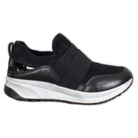 Wygodne buty wsuwane w kolorze czarnym to idealna propozycja na co dzień. Jest to model na niewielkiej platformie, dzięki czemu sylwetka prezentuje się subtelniej. Trzeba zaznaczyć, że konstrukcja opisywanego obuwia jest stabilna, a wysokość nieodczuwalna.