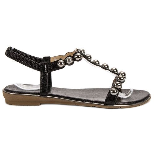 Czarne, wsuwane sandałki damskie, które są doskonałym dodatkiem każdej letniej stylizacji. Ciekawym ozdobnikiem są połyskujące kulki, które znajdują się na całej szerokości pasków. Buty wykonane są z tworzywa skóropodobnego, ale jest ono doskonałej jakości, dzięki czemu przetrwa jeszcze wiele sezonów.