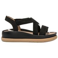 Sandały SHELOVET to wygodne wsuwane buty wykonane z zamszowej skóry ekologicznej w kolorze czarnym. Sandały mają platformy o wysokości 4,5 cm oraz wkładki z ekologicznej skóry, dzięki czemu będą one wygodne nawet podczas dłuższego chodzenia. Swoistą dekorację stanowią grube podeszwy w kolorze beżowym.