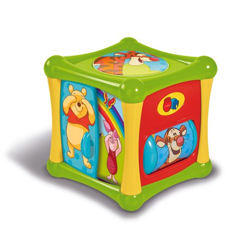 Plastikowa, kolorowa kostka, wiele różnych aktywności z każdej strony -turlanie, wciskanie, wyciąganie, 10 cm, 12m+