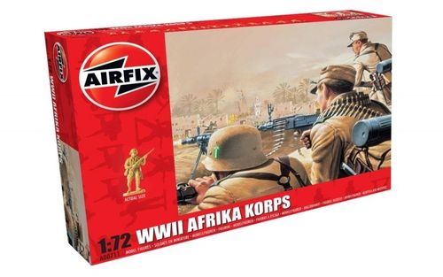 Zestaw zawiera plastikowe figurki żołnierzy Afrika Korps z okresu II Wojny Światowej.