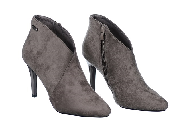 Niezwykle eleganckie zamszowe botki, postawiono je na wysokiej szpilce, która doskonale wysmukla sylwetkę oraz pięknie eksponuje linię nóg. Prezentowany model, pomimo wysokiego obcasa jest niezwykle stabilny i gwarantuje wygodne chodzenie. Z boku suwak ułatwiający zakładanie i zdejmowanie butów. Stylowe, lekkie i bardzo wygodne botki to idealne rozwiązanie na każdą okazję w czasie codziennych spotkań czy wieczornych wyjść. Najmodniejsze wzornictwo!