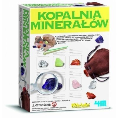 Zestaw zawiera bryłę gipsu, w której ukrytych jest 8 naturalnych minerałów oraz narzędzia do prowadzenia wykopalisk. Po odnalezieniu wszystkich minerałów należy je dokładnie oczyścić. Dodatkowo w zestawie jest lupa, mały woreczek na kamienie oraz instrukcja wraz z ciekawymi informacjami na temat minerałów. Dołączona do zestawu kartonowa karta ekspozycyjna zawiera wiele ciekawych informacji na temat minerałów.