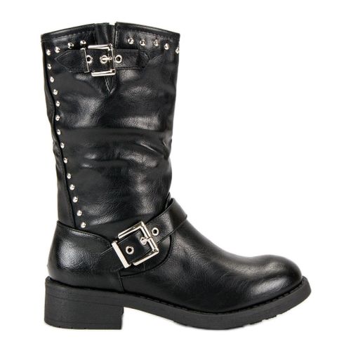 Wysokie botki workery marki SDS w kolorze czarnym, to buty, które doskonale nadają się dla atrakcyjnej i pewnej siebie kobiety. Perfekcyjnie sprawdzą się na chłodne, jesienne dni. Wykonane zostały z wysokiej jakości ekologicznej skóry. Ozdobna sprzączka i metalowe dżety podkreślają ich rockowy charakter.
