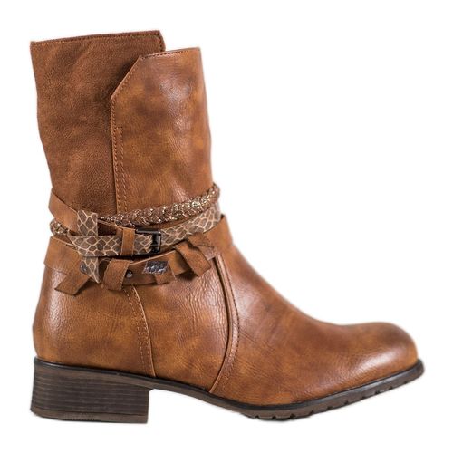 Modne i wygodne workery damskie w kolorze ciepłego brązu. Ten model został wykonany z wysokiej jakości tworzywa skóropodobnego. Cholewka za kostkę świetnie zabezpiecza przed zimnem oraz wilgocią. Podeszwa gwarantuje wygodę w trakcie chodzenia. Buty będą pasować do bardzo zróżnicowanych stylizacji. Zarówno tych codziennych, jak i nieco bardziej formalnych.