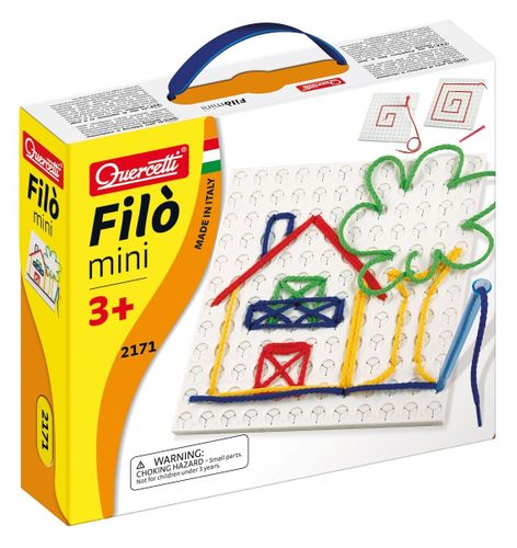 Quercetti wyszywanka Mini Filo to super zabawa, która pozwala szybko wykonać kolorowe wzory z szablonów, a następnie cofnąć je i jeszcze szybciej zaprojektować nowe.