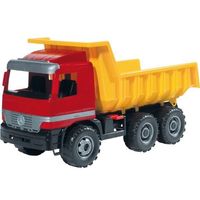 Super wywrotka Giants Dump Truck dwuosiowa w kolorze żółtoczarnym z żółtą naczepą. Wykonana z wysokiej jakości materiałów, spełniających normy Europejskie. Pojazd posiada blokadę naczepy, dzięki czemu dziecko może bezpiecznie na nim siadać. Ta funkcjonalna wywrotka ma 63cm długości i wytrzymuje obciążenie do 150 kg.