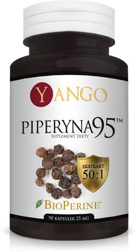 Piperyna95™ od YANGO zawiera w sobie SILNY EKSTRAKT z czarnego pieprzu. To znaczy, że stosując nasz preparat otrzymasz widocznie lepsze rezultaty, w porównaniu do suplementów na bazie sproszkowanego pieprzu. Ekstrakt, a sproszkowana roślina to potężna różnica pod względem siły działania na organizm ludzki. Kurkumina 95 Składnik aktywny Dawka dzienna Ekstrakt z czarnego pieprzu 25 mg w tym piperyna (98%) 23,75 mg Pozostałe informacje Kapsułek w opakowaniu 90 kapsułek Rodzaj kapsułek Wegetariańskie