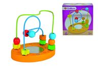 Zabawka stymulująca umiejętności motoryczne dziecka. W podstawkę wmontowane jest lusterko, na drutach zamocowanych jest 10 koralików.