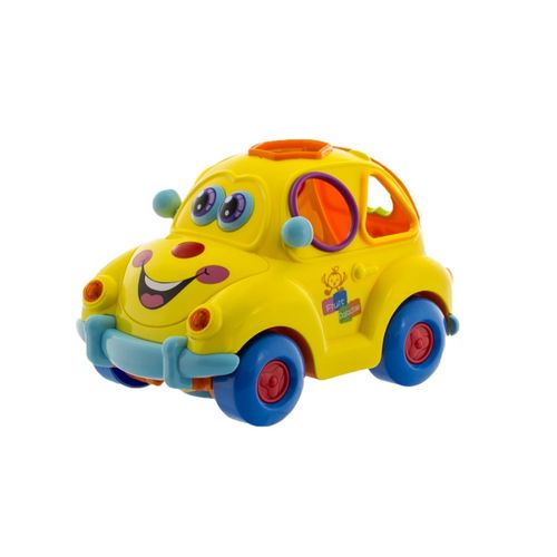 Samochód na karoserii posiada 6 różnych, kolorowych otworów do których należy wkładać dołączone do zabawki klocki. Klocki są przeźroczyste a w każdym znajduje się owoc.