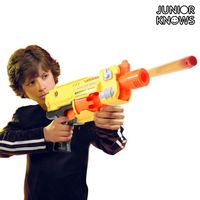 Niech potyczka się rozpocznie! Gotów, cel, pal z fantastycznym zabawkowym karabinem na naboje! To taka świetna zabawa! Możesz go używać do strzelania nieszkodliwymi gąbkowymi nabojami. To świetny prezent dla dzieci! Wykonany z plastiku. Wymiary ok.: 45 x 22 x 8 cm. W zestawie znajduje się 20 naboi (ok. 6,5 cm długości x 1 cm średnicy). Działa na baterie (3 x AA, nie dołączone).