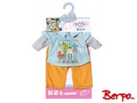 Kolekcja chłopięca Ubranko dla chłopca . Oto modny zestaw ubranek dla braciszka lalki Baby born. Bluzka z kołnierzykiem, wywiniętymi mankiecikami, spod których wyłania się melanżowy szary rękaw, a do tego spodnie z przeszyciami. Górną część garderoby zdobi zawadiacki motyw. Całość prezentuje się doskonale!