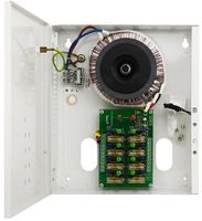 Zasilacz AC/AC PSAC 08246 przeznaczony jest do zasilania kamer analogowych lub innych urządzeń wymagających stabilizowanego napięcia o wartości 24V AC lub 27V AC i wydajności całkowitej 6A@24V AC. Zasilacz posiada 8 wyjść niezależnie zabezpieczonych bezpiecznikami topikowymi lub polimerowymi PTC. Zakres napięcia wyjściowego regulowany jest skokowo za pomocą odpowiednich zworek, niezależnie dla każdego wyjścia AUX. Zasilacz umieszczony jest w obudowie metalowej wyposażonej w mikroprzełącznik sygnalizujący otwarcie drzwiczek (czołówki).