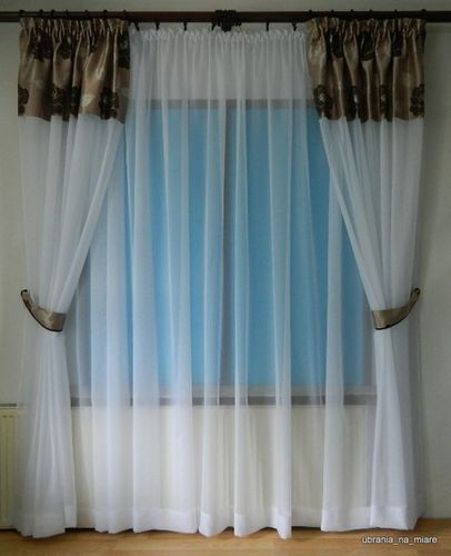 Witam na mojej aukcji ! Cena dotyczy 1 sztuki zasłony. Zasłony z brązowymi kwiatami Efektowne bardzo eleganckie zasłony uszyte z zasłonowej tkaniny w kolorze beżu z brązowymi kwiatami i białego woalu. Zasłona została uszyta na taśmie marszczącej o szerokości 10cm z możliwością założenia na kołek ( taśma tunelowa ) lub zapięcia na żabki z falbaną kryjącą żabki. Wysokość zasłony wynosi 240cm lub 250cm do wyboru (wysokość mierzona od momentu przyszycia górnej części taśmy, Szerokość zasłony 150cm. (Po zalicytowaniu proszę podać wysokość zasłon) Zasłony pięknie wyglądają w połączeniu z woalową firanką lub bez firany. Firankę z woalu można dokupić na innej aukcji w cenie 19zł za mb. Cena dotyczy jednej zasłony.