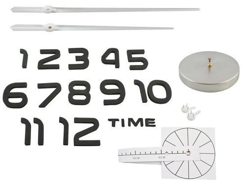 ZEGAR ŚCIENNY DIY 60-130CM zegar ścienny "zrób to sam" z efektem lustra możliwość montażu zegara o średnicy 60-130cm efekt 3D - piankowe cyfry z lustrem cichy - bez efektu tykania SPECYFIKACJA kolor: srebrny materiał: pianka+tworzywo+metal długość wskazówek: 39 + 32cm grubość cyfr: 1cm średnica: 60-130cm zasilanie: 1 x bateria AA (brak w zestawie) waga zestawu: 265g waga z opakowaniem: 365g W ZESTAWIE piankowe cyfry i napis lustrzane nakładki tarcza zegara ze wskazówkami miarka do zaznaczenia okręgu (średn. 100cm, jednak samodzielnie można też zamontować zegar o większej średnicy - wystarczy dokleić kartkę do załączonego szablonu lub użyć sznurka o wybranej długości i wyznaczyć większy okręg) haczyki do zamontowania tarczy Zegar do samodzielnego montażu. Piękny i bardzo efektowny efekt lustra z wysokim połyskiem. Zegar najlepiej wygląda mając średnicę od 60 (wskazówki blisko cyfr) do 130cm. Poszczególne cyfry montowane są za pomocą załączonej taśmy samoprzylepnej. Zegar pasuje do każdego koloru ścian. Możesz dowolnie ułożyć cyfry - klasycznie po okręgu lub obracając je/przesuwając, aby stworzyć nieregularną kompozycję - wszystko zależy od Ciebie! Zegar jest cichy - brak efektu tykania! SPOSÓB MONTAŻU Szablon z kątomierzem pozwala wymierzyć idealny okrąg. Kątomierz ustaw w samym środku zegara. Zaznacz na ścianie delikatnie ołówkiem miejsca montażu cyfr przesuwając szablon dookoła osi. Przyklej lustrzane nakładki na piankowe cyfry, a te z kolei przyklej do ściany usuwając z tyłu zabezpieczenie taśmy samoprzylepnej. Do ściany przybij załączony haczyk. Nałóż wskazówki na tarczę zegara. Włóż baterię do mechanizmu z tyłu tarczy. Nałóż tarczę zegara na haczyk. Usuń folie zabezpieczające lustrzane cyfry i ciesz się pięknym połyskiem.