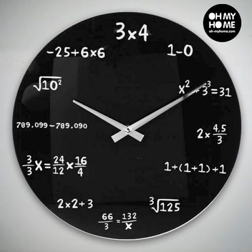 Z naszym oryginalnym zegarem matematyka już nie będzie straszna! Analogowy zegar ścienny Matematyka wykonany ze szkła przypomina tablicę, na której widnieją różne operacje matematyczne. Idealny jako dekoracja sal lekcyjnych, szkół itd. Świetny prezent dla matematyków i naukowców. Średnica: ok 35 cm. Grubość: ok. 0,3 cm. Działa na baterie (1 x AA, nie załączona w zestawie).