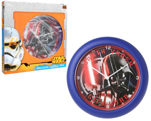 Dziecięcy zegar ścienny stworzony na licencji Star Wars. Niesamowicie ozdobny i bardzo praktyczny. Czytelny z wzorem z kultowego filmu, prezentuje się rewelacyjnie. Okrągły z możliwością zawieszenia na ścianie, zasilany na baterie 1xAA.