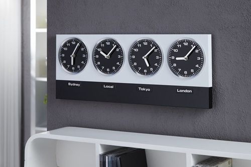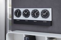 Zegar World Time możemy wykorzystać aby wskazywał czas 4 różnych strefach czasowych. Dodatkowo do zestawu z zegarem dołączone są magnetyczne plakietki z najpopularniejszymi miastami: Los Angeles, Tokyo, Sydney,Shanghai, New York, London, Paris oraz wskazanie czasu lokalnego: Local.