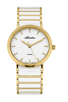 Zegarek szwajcarskiego producenta ADRIATICA. Stalowa koperta złocona w technologii pvd. Białą tarczę idealnie podkreśla bransoleta z ogniwek ceramicznych, odpornych na zarysowania. Czasomierz wyposażono w mechanizm kwarcowy Ronda 515. Klasa szczelności 50M.